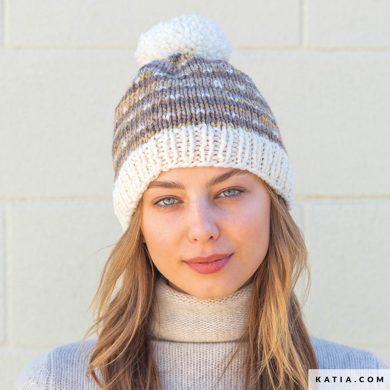 Het breien van een muts met een jacquardsteek is met Katia Easy Hat heel gemakkelijk. U hebt maar één knot van deze leuke limited edition van Ciclo Perfecto nodig om een perfecte wintermuts te breien. Gebruik het gratis patroon voor een combinatie van muts met pompoen en een dubbele kol met jacquard motief en strepen die nooit uit de mode raakt.