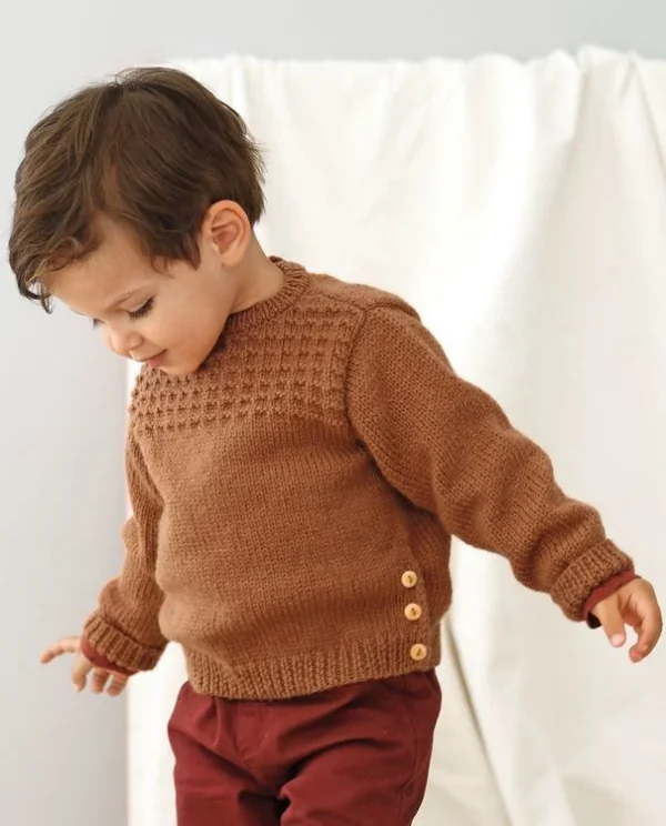De wol is afkomstig van schapen. Het heeft als voordeel dat het sterk, ademend is en een goede bescherming biedt tegen de kou. Bovendien is dit Ecolaine-garen GOTS-gecertificeerd.